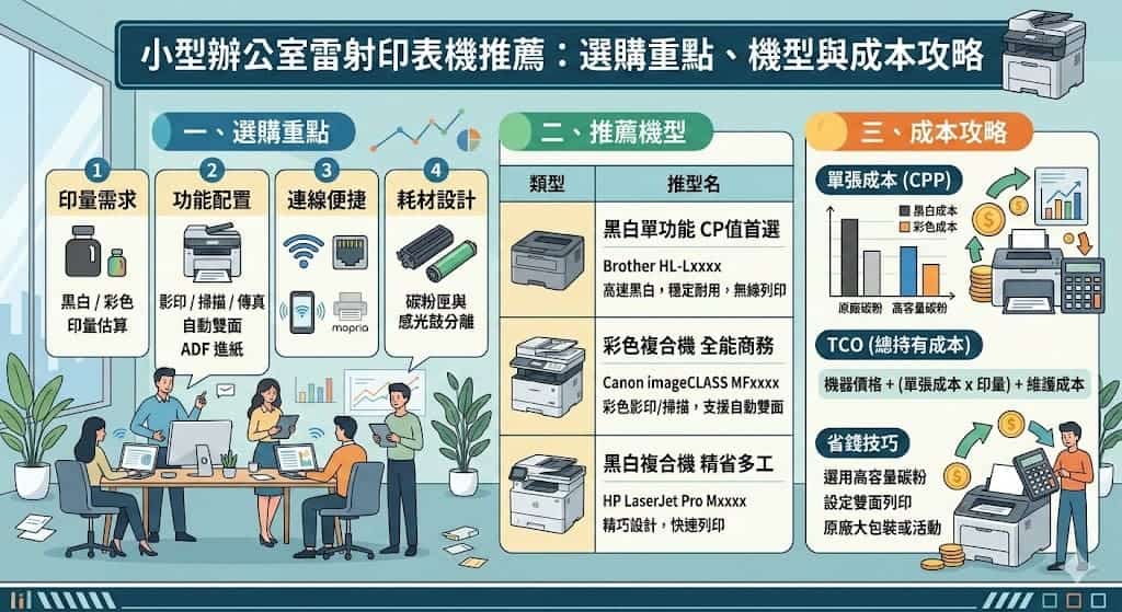 在為小型辦公室選擇印表機時,除了設備本身的初始價格,墨水和碳粉等耗材的長期成本是影響總體營運開銷的關鍵因素。這直接關係到您評估印表機是否具備成本效益。